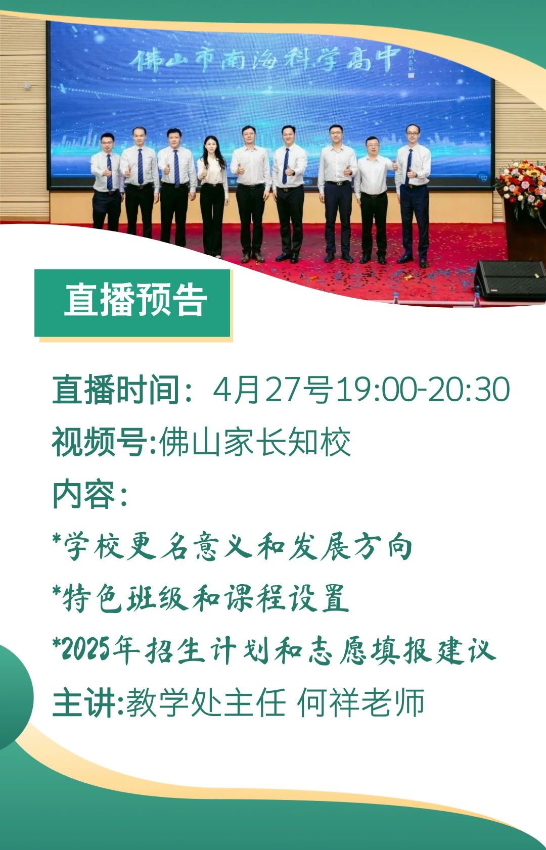 4.22/4.25/4.27 连续三场丨南海科学高中线上招生宣讲会约定您!
