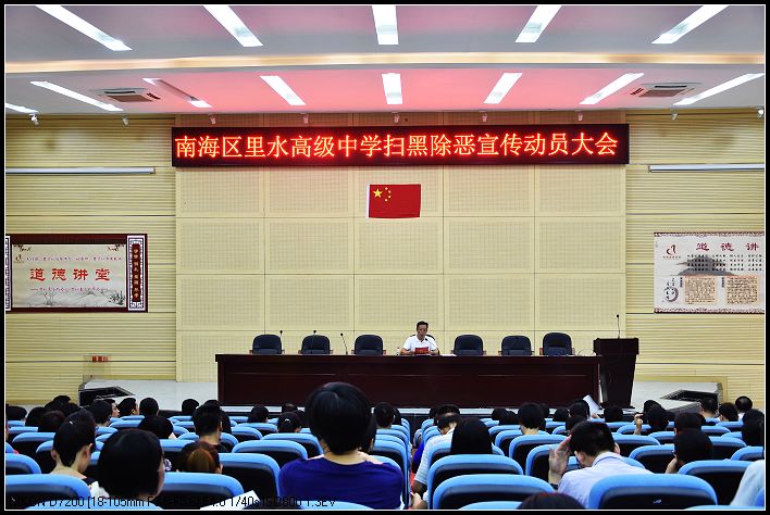 2018年9月6日下午,里水高级中学召开全体教师大会,邝卫航校长对深入开展“扫黑除恶”工作进行了宣传动员,会议提高了教职员工对扫黑除恶工作的认识。